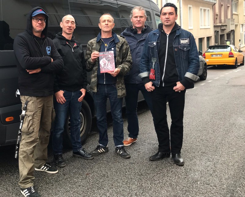 • Guillaume Gwardeath et Sam Guillerand avec JBe, Thomas et Phil des Burning Heads, à Limoges (octobre 2020). Photo Delphine Roux.
